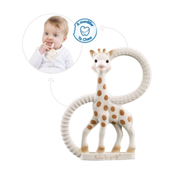 The first teething ring, made of 100% natural rubber, ideal to relieve your baby’s gums.