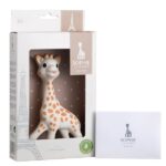 Sophie’s shape and size (17 cm) are ideal for small hands. She is very light and her long legs and neck help the baby to easily catch and handle her from the first days of even.